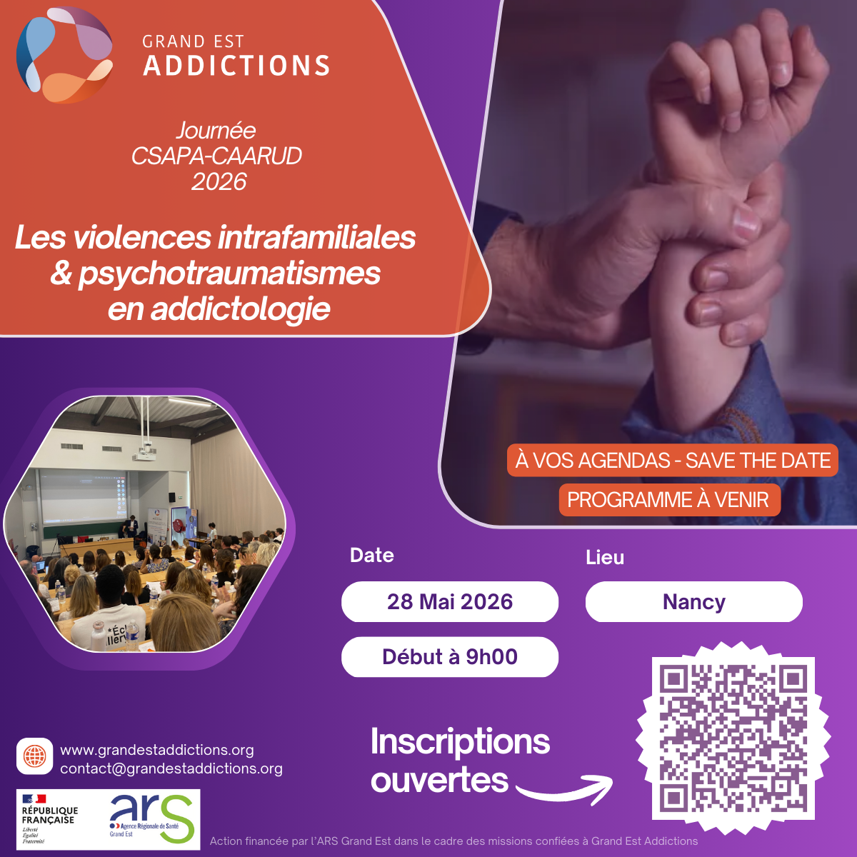 Grand Est Addictions organise la journée CSAPA–CAARUD le jeudi 28 mai 2026 à Nancy.