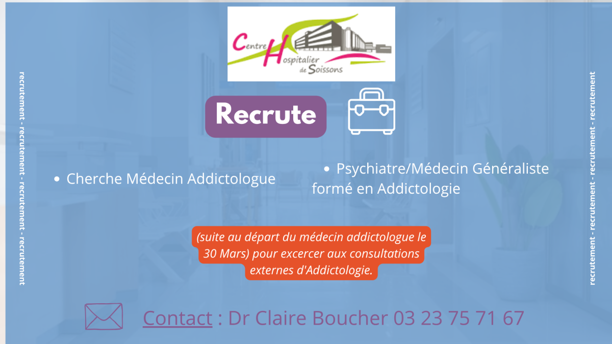 📢 Le Centre Hospitalier de Soissons recrute un Médecin Addictologue ou Psychiatre / Médecin Généraliste formé en addictologie