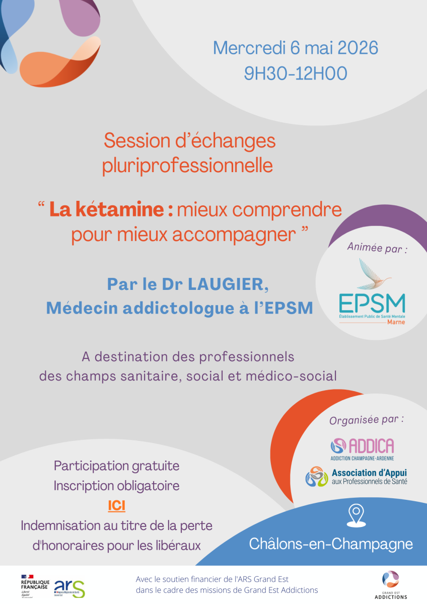 🔵Organisée par ADDICA dans le cadre des actions de Grand Est Addictions et animée par le Dr LAUGIER, médecin addictologue à l'EPSM