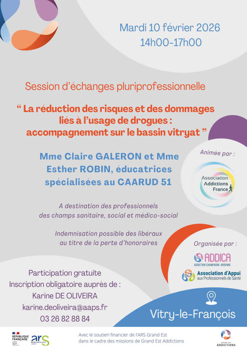 🔵Organisée par ADDICA dans le cadre des actions de Grand Est Addictions et animée par Mme Claire GALERON et Mme Esther ROBIN, éducatrices spécialisées au CAARUD 51