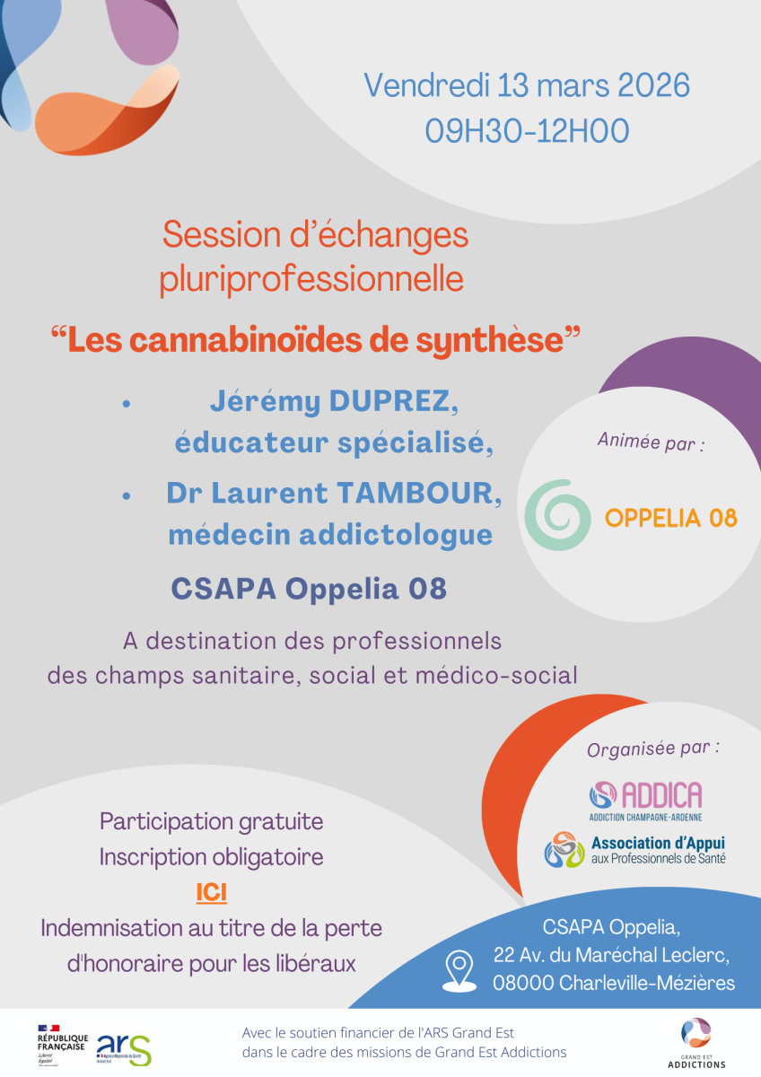 🔵Organisée par ADDICA dans le cadre des actions de Grand Est Addictions et animée Jérémy DUPREZ, éducateur spécialisé, et le Dr Laurent TAMBOUR, médecin addictologue, du CSAPA Oppelia 08.