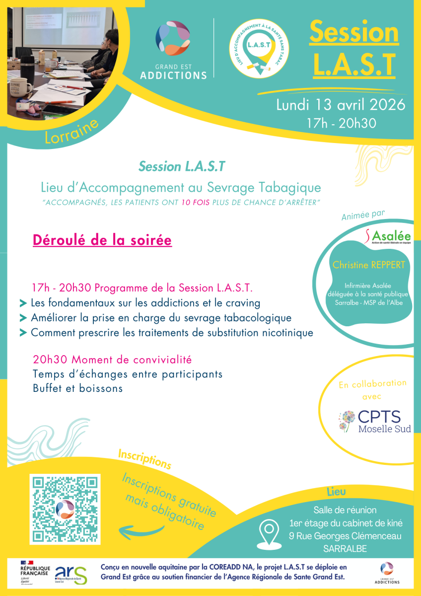📢 Grand Est Addictions organise une session d'échanges pluriprofessionnelle cadre du projet L.A.S.T - Lieu d’accompagnement à la santé sans tabac.